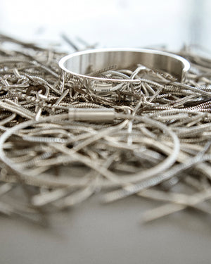 la collection ruban est née avec le gramme en 2013 et trouve son inspiration à partir de formes élémentaires présentent dans l'inconscient collectif. Une forme iconique, sans fermoir, pure et parfaitement simple, donnant l'impression d'une création tranchée dans la matière presque laissée à l'état brut. les bracelets ruban le gramme sont fabriqués en France à partir de métaux précieux recyclés.